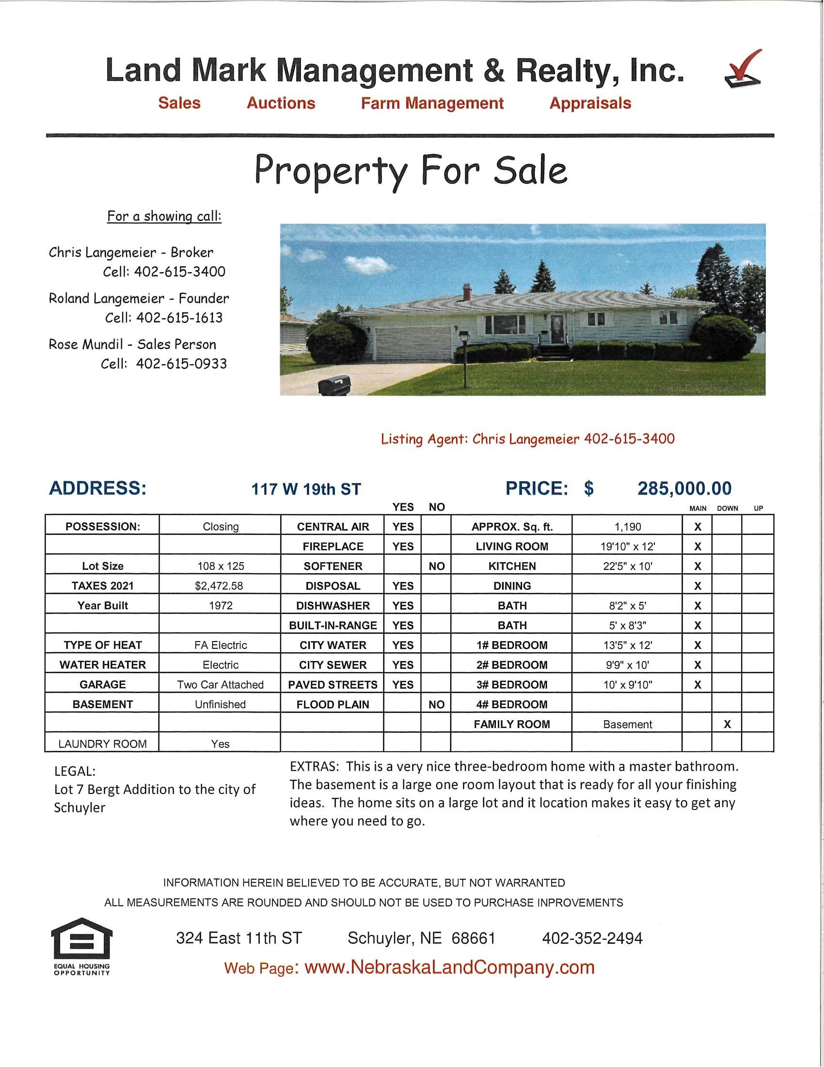 This is a very nice three-bedroom home with a master bathroom. The basement is a large one room layout that is ready for all your finishing ideas. The home sits on a large lot and it location makes it easy to get any where you need to go. Call listing agent Chris Langemeier at 402-352-2494 today.