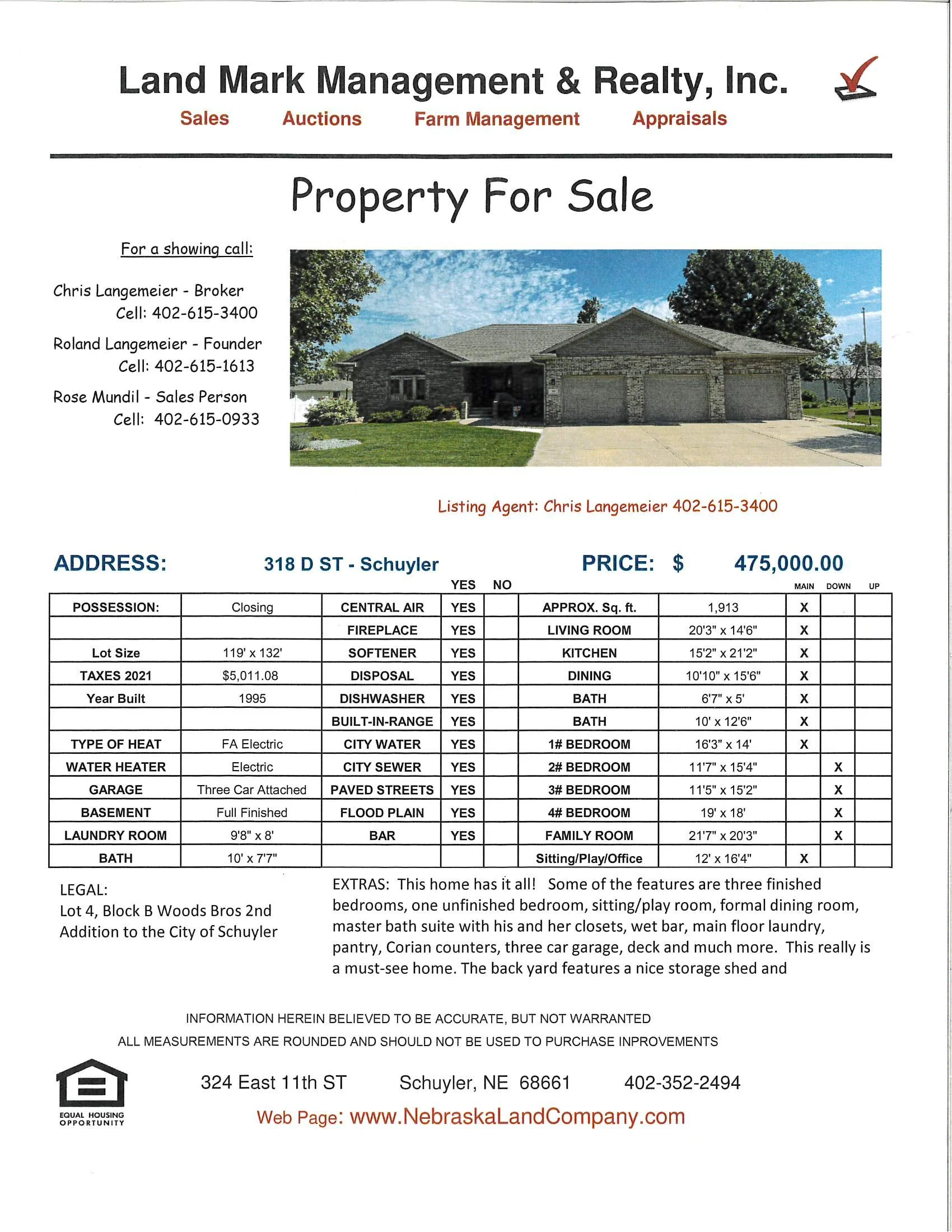 This home has it all! Some of the features are three finished bedrooms, one unfinished bedroom, sitting/play room, formal dining room, master bath suite with his and her closets, wet bar, main floor laundry, pantry, Corian counters, three car garage, deck and much more. This really is a must-see home. The back yard features a nice storage shed and underground lawn sprinklers. Call listing agent Chris Langemeier at 402-352-2494 today.
