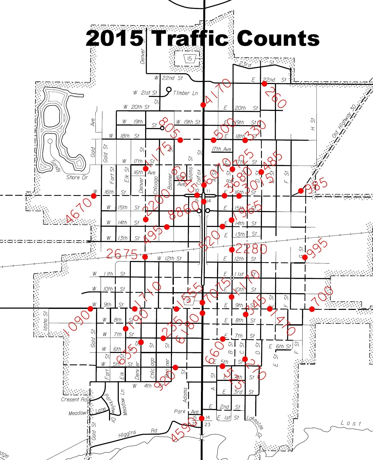On Highway 15 and yards from US Highway 30