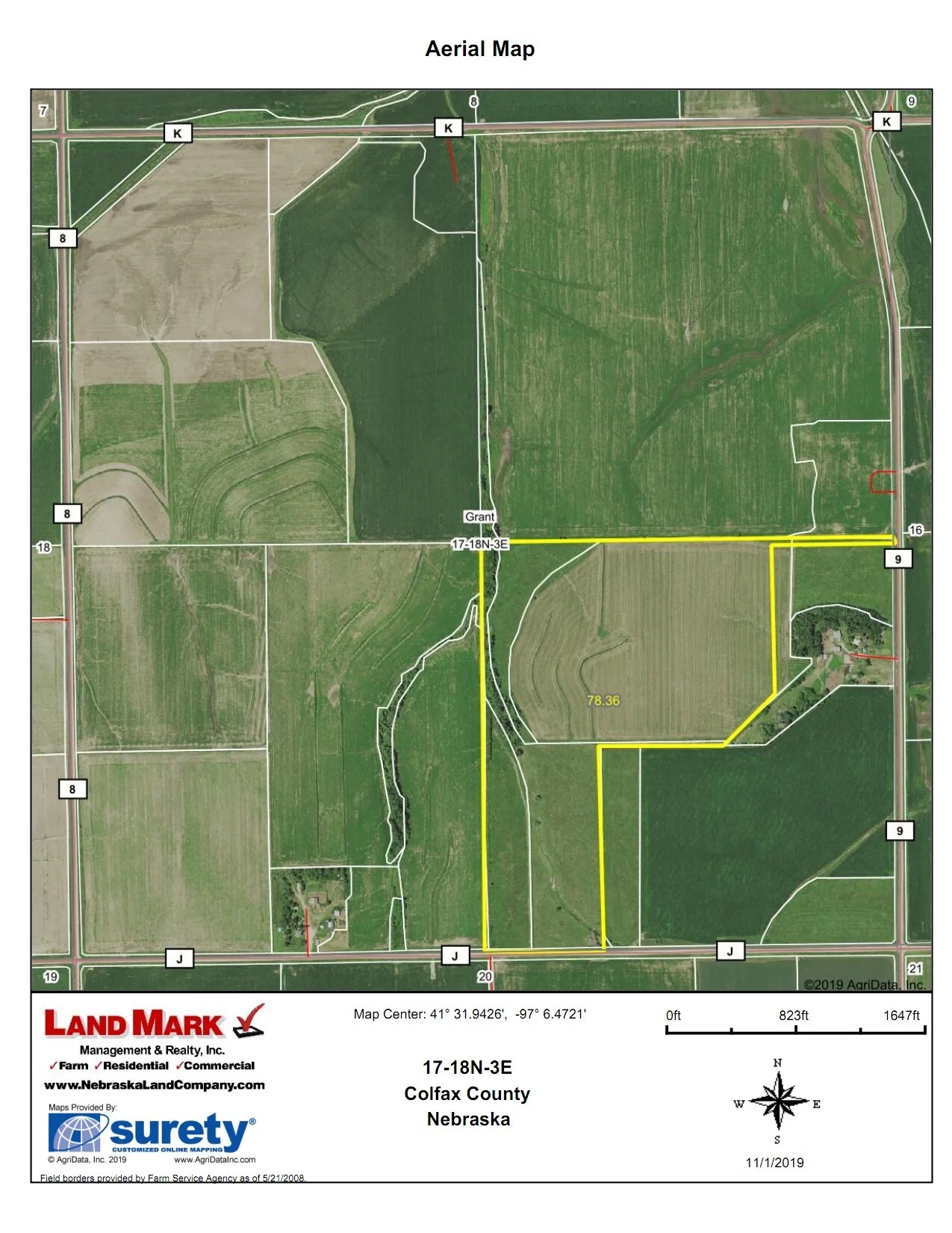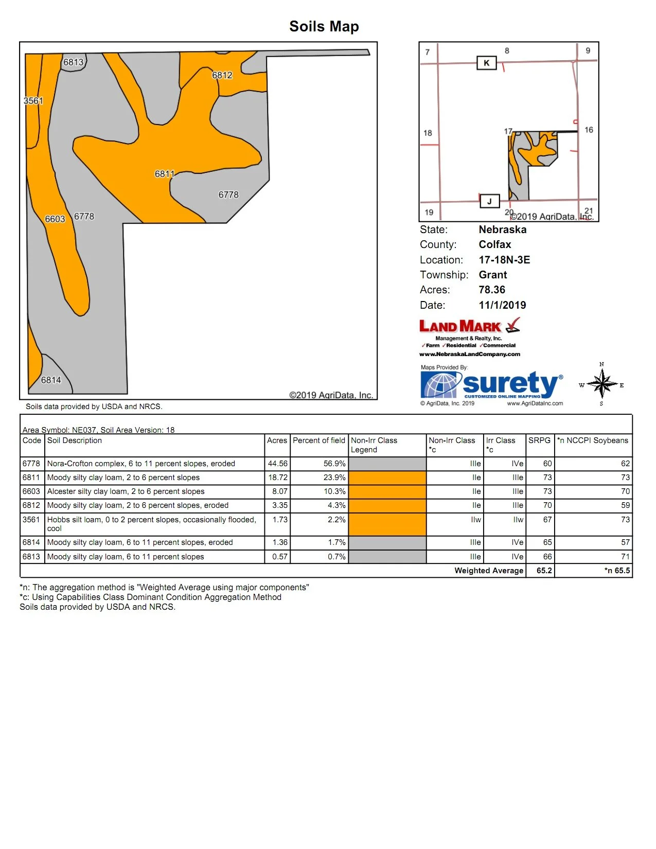 LAND: 78.36 +/- acres: 46.06 Crop (county records)