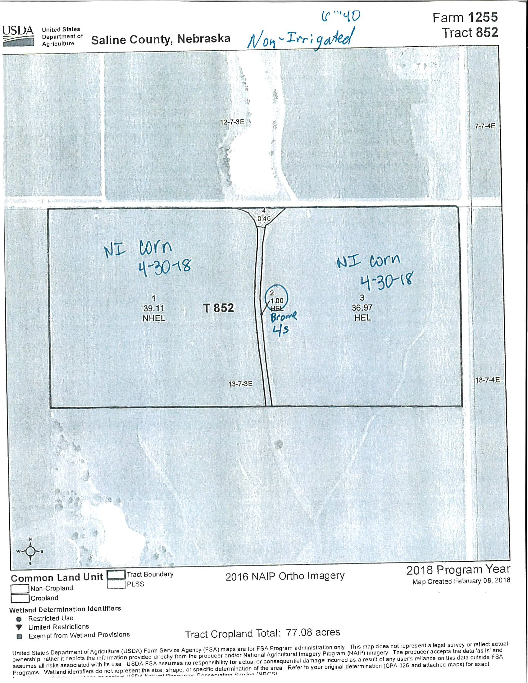 FSA: 77.08 Crop acres Corn 38.2 acres 124 Bushel Corn yield, Soybean 38.2 acres 49 Bushel yield