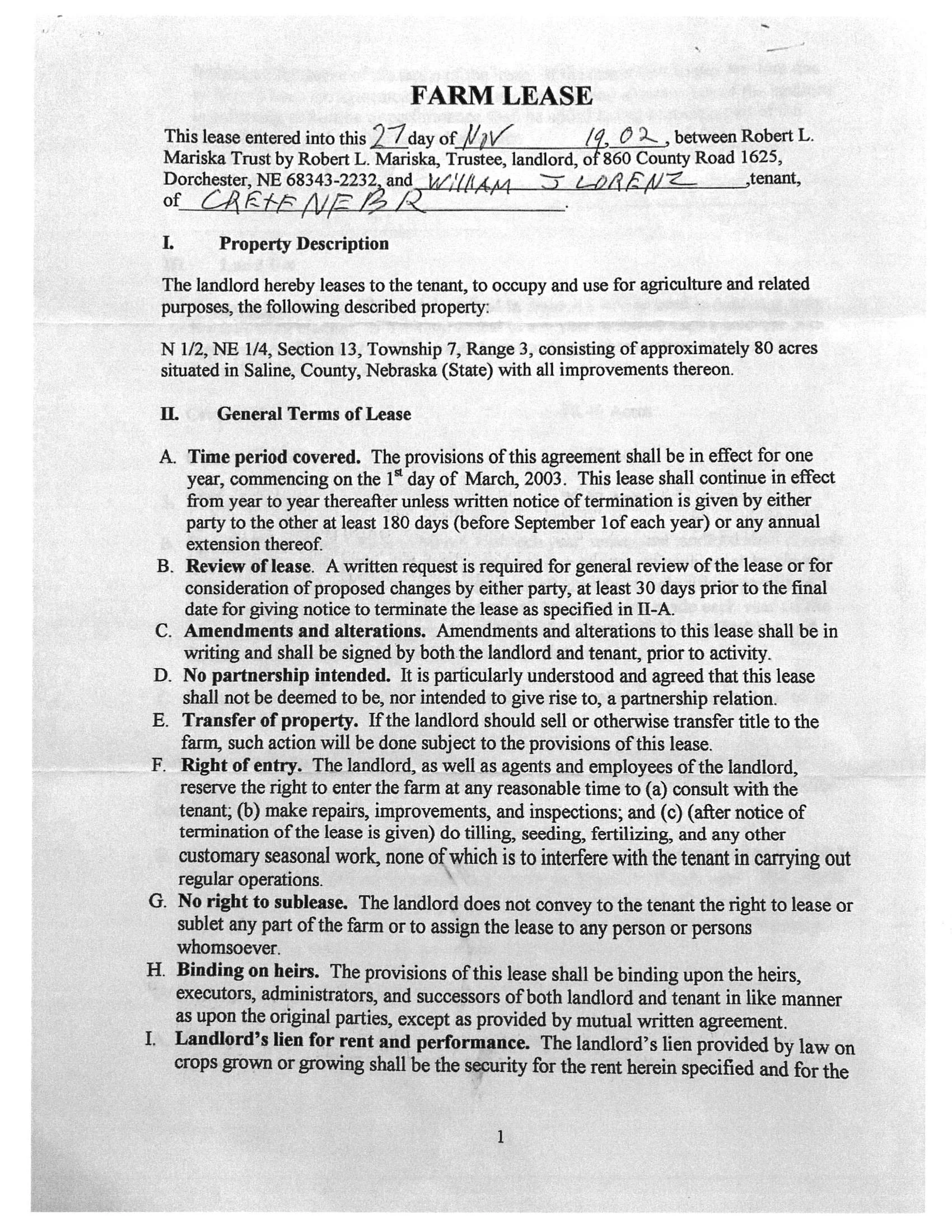 To be sold subject to 2019 crop lease, and free and clear of all other encumbrances