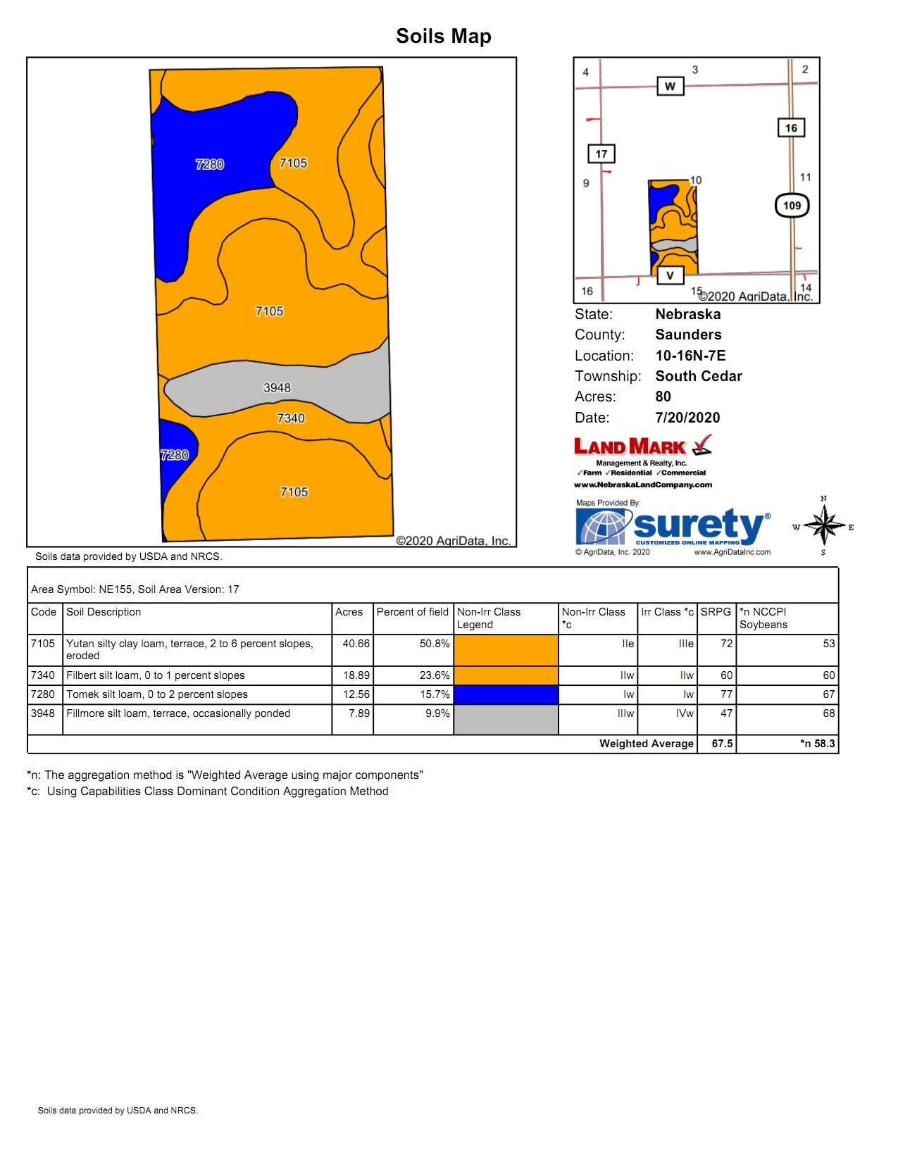 FSA: 78.4 Crop acres Corn 39.5 acres 135 Bushel Corn yield, Soybeans 38.9 Acres 41 Bushel PLC yield.